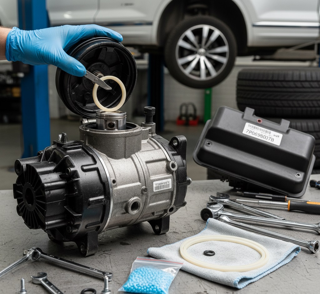 Volkswagen Touareg второго поколения (7P), выпускавшийся с 2010 по 2018 год, оснащался надежной, но требующей внимания пневматической подвеской. Ее "сердцем" является компрессор, отвечающий за создание и поддержание давления в системе. Оригинальный компрессор, поставляемый на конвейер, чаще всего производства WABCO, имеет VAG-номер 7P0698007B (а также его вариации 7P0698007A, 7P0698007D). С пробегом его производительность падает, что приводит к целой цепочке проблем. Замена на новый оригинальный узел стоит очень дорого, а китайские аналоги не всегда отличаются надежностью. Оптимальный выход — ремонт с помощью качественного ремкомплекта.